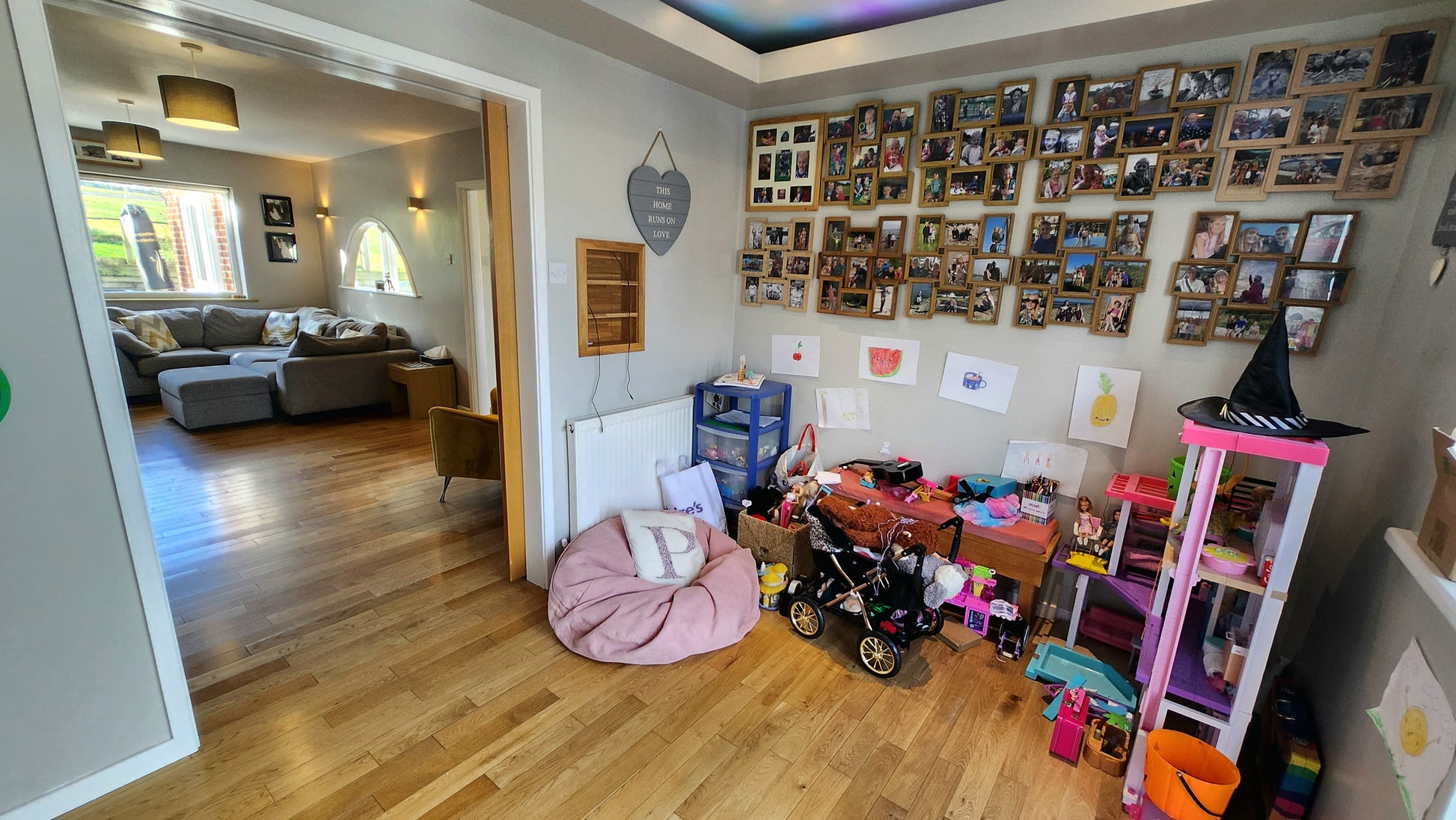 Living Areas: Expansive living room complete with a cosy wood-burning fire, perfect for family gatherings, plus a separate playroom ideal for children and guests.