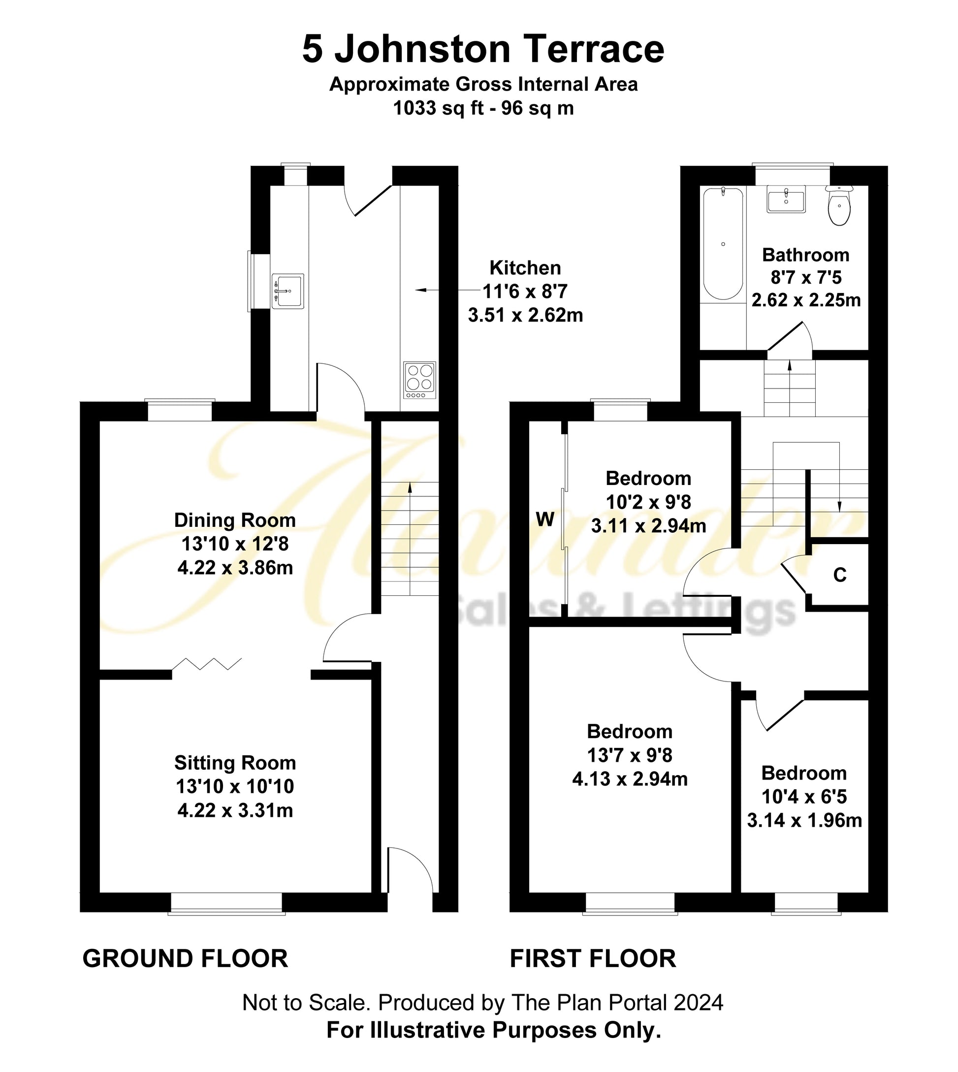 **Entrance Hall**: A welcoming space with a UPVC double-glazed door and stairs leading to the first floor.