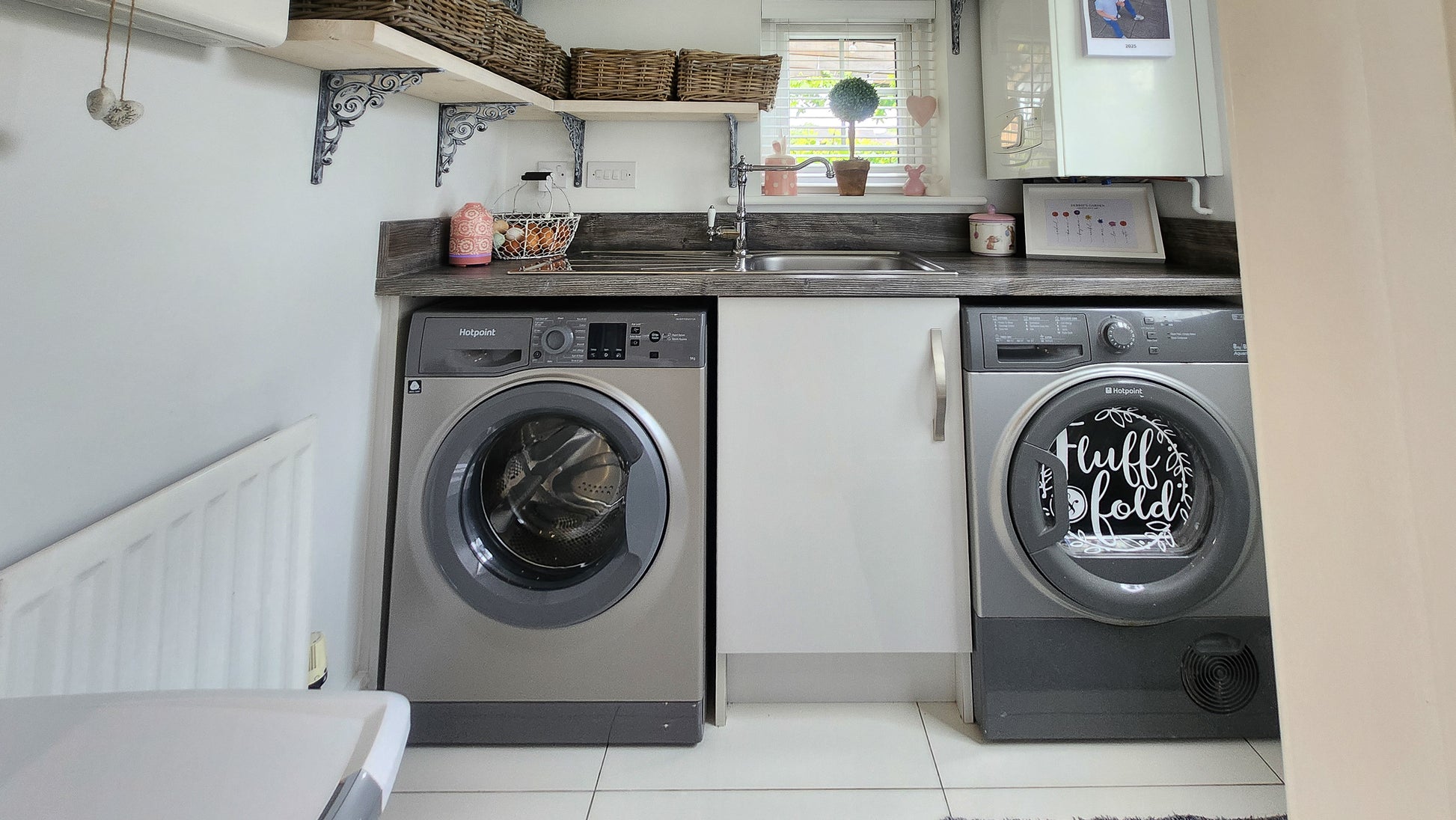 A fabulous utility room keeps the hum of daily life behind closed doors, with space for a washer, dryer, and folding area. Youโll also find two handy cupboards for all your cleaning essentials โ neat, hidden, and oh-so-useful.
