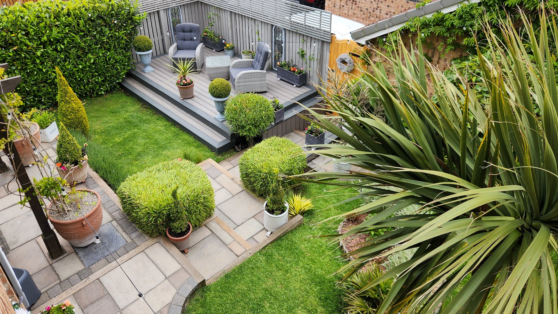 A lush, green lawn ideal for little feet or lounging in the sun
