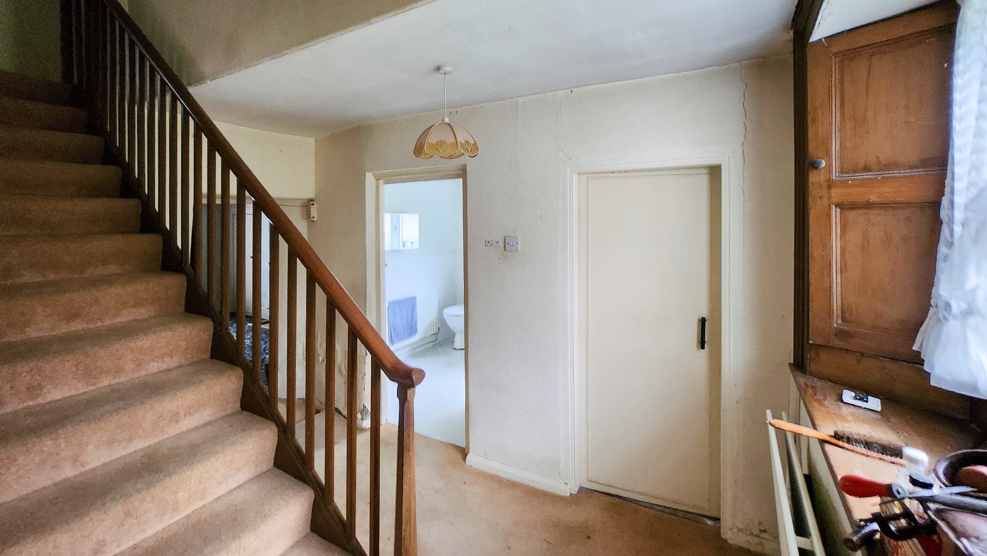 Spacious kitchen area to the rear with open loft access above – ideal for storage or future conversion (subject to planning)