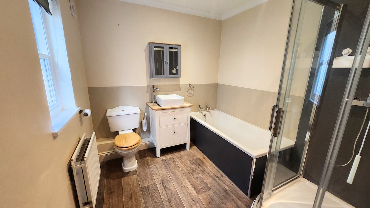 The farmhouse kitchen and dining area are a chef’s paradise, overlooking the beautiful gardens, and providing a perfect backdrop for culinary adventures and memorable family meals. The immaculate bathroom, complete with a modern shower cubicle, offers a relaxing experience in the comfort of your own home.