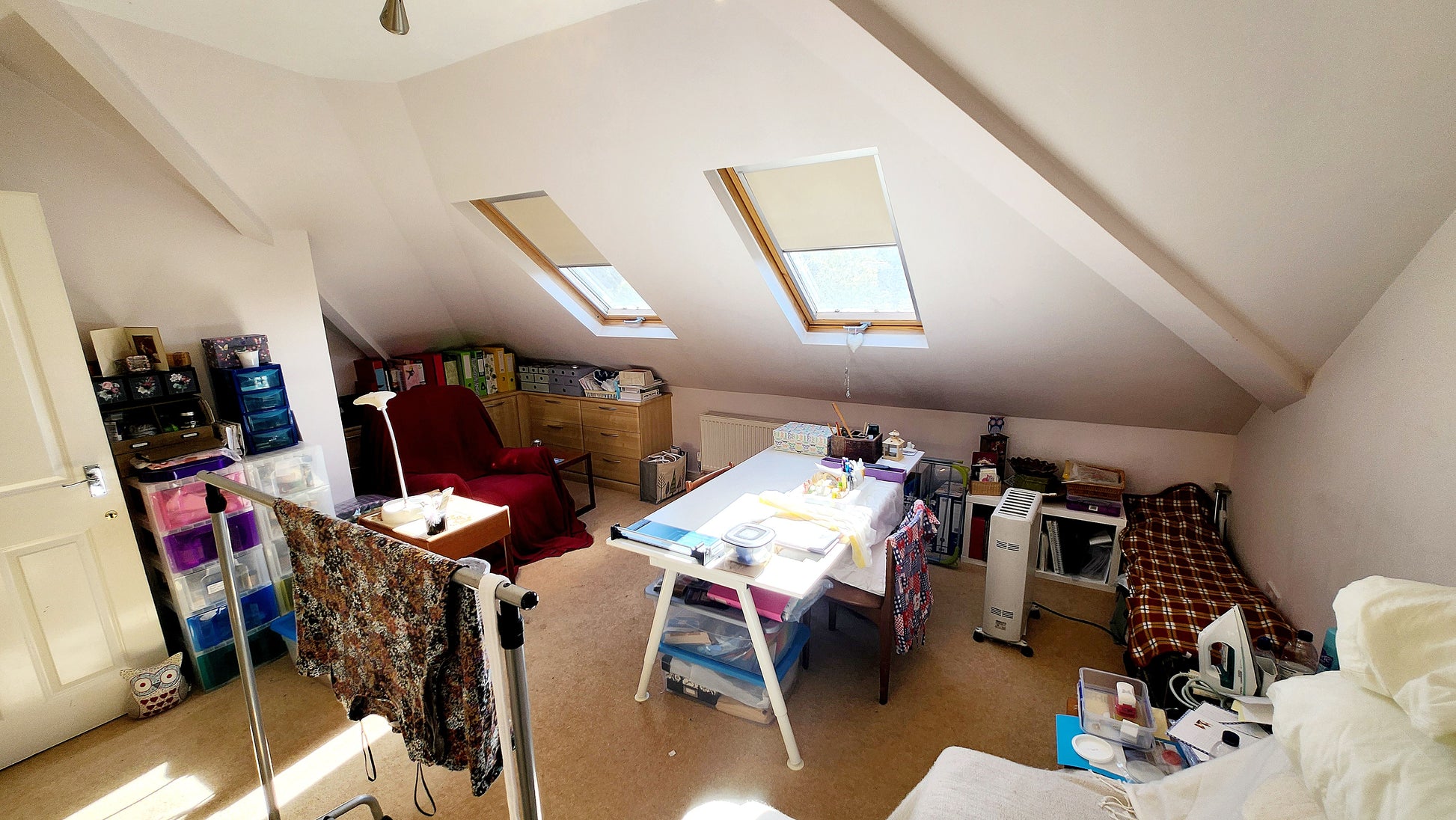 The entrance hallway leads to a generous open-plan lounge, kitchen, and dining area, designed for both relaxation and entertaining. Upstairs, you’ll find two beautifully presented bedrooms—one with an en-suite bathroom—plus an additional bathroom. The top floor offers a versatile space, perfect for a third bedroom, a creative crafting area, office or additional lounge.